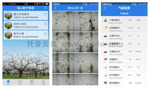 時(shí)間: 2016年完工,碭山縣農(nóng)業(yè)委員會攜手浙江托普云農(nóng)科技股份有限公司打造綜合管理云平臺對接數(shù)字果園管理系統(tǒng)。