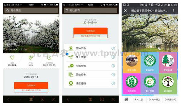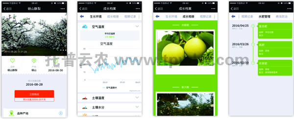碭山“數(shù)字果園”的托普云農(nóng)綜合管理平臺還嵌入了農(nóng)產(chǎn)品質(zhì)量安全追溯系統(tǒng),實(shí)現(xiàn)“從農(nóng)田到餐桌”的全程可追溯化管理。該系統(tǒng)是區(qū)域農(nóng)產(chǎn)品質(zhì)量安全信息統(tǒng)一發(fā)布和查詢平臺,根據(jù)農(nóng)產(chǎn)品“一物一碼”標(biāo)準(zhǔn),消費(fèi)者可以掃描農(nóng)產(chǎn)品上附帶的而為買,準(zhǔn)確了解農(nóng)產(chǎn)品從生產(chǎn)、加工、物流、倉儲、銷售等全過程信息。