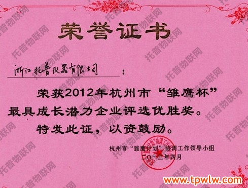 “ 雛鷹計劃”企業(yè),是杭州市于2010年6月正式啟動實施的一項計劃,這項計劃將用5年時間,重點培育和扶持1000家科技型初創(chuàng)企業(yè),形成技術(shù)水平領(lǐng)先、競爭能力強、成長性好的科技型企業(yè)群,建立一個“雛鷹企業(yè)”培育庫。托普儀器與去年8月入圍雛鷹,經(jīng)過推薦、初評、終評環(huán)節(jié),終于過關(guān)斬將折得金桂。“雛鷹杯”的獲得不僅彰顯了我司厚積薄發(fā)的既有實力和蓬勃向上的發(fā)展勢頭,也彰顯了我司在中國農(nóng)業(yè)儀器行業(yè)的重要地位,更加突顯了我司全體員工對托普成長發(fā)展所做出的辛勤努力和無私奉獻。