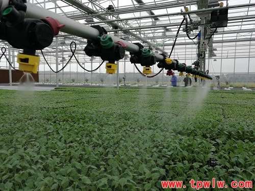 通過(guò)托普云農(nóng)物聯(lián)網(wǎng)控制的自走式噴灌機(jī)在工作中