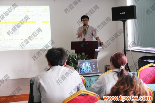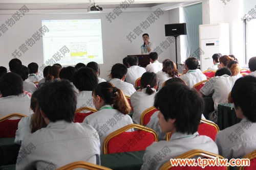 圖為:生產(chǎn)部唐主任在會議上講話