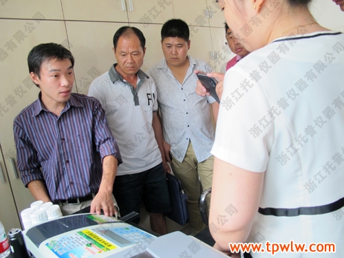 圖為:托普公司技術(shù)人員講解儀器操作