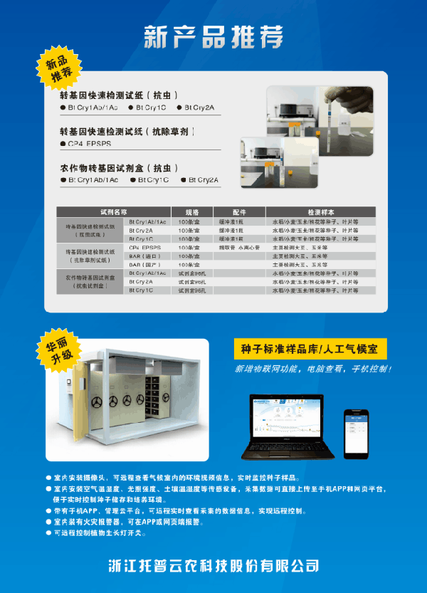 此次展會(huì),浙江托普云農(nóng)科技股份有限公司也受邀出席,并且?guī)砹斯咀钚碌漠a(chǎn)品,如果您對轉(zhuǎn)基因快速測試、種子標(biāo)簽二維碼追溯、人工氣候室及其他種子檢驗(yàn)類儀器感興趣,不妨到展位參觀一下。