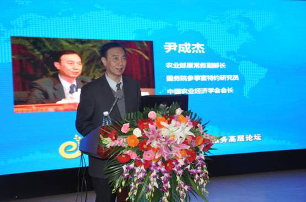 農(nóng)業(yè)部原常務(wù)副部長(zhǎng)、國(guó)務(wù)院參事室特約研究員、中國(guó)農(nóng)業(yè)經(jīng)濟(jì)學(xué)會(huì)會(huì)長(zhǎng)尹成杰作大會(huì)主旨報(bào)告