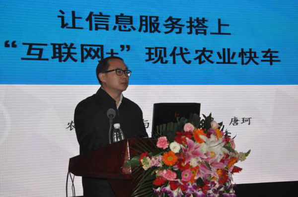 農(nóng)業(yè)部市場(chǎng)信息司唐珂司長(zhǎng)以“讓信息服務(wù)搭上‘互聯(lián)網(wǎng)+’現(xiàn)代農(nóng)業(yè)快車”為主題,從“互聯(lián)網(wǎng)+”現(xiàn)代農(nóng)業(yè)相關(guān)政策解讀、農(nóng)業(yè)部“互聯(lián)網(wǎng)+”現(xiàn)代農(nóng)業(yè)行動(dòng)成效、信息進(jìn)村入戶工程三個(gè)方面作了報(bào)告,受到與會(huì)代表的熱烈歡迎。