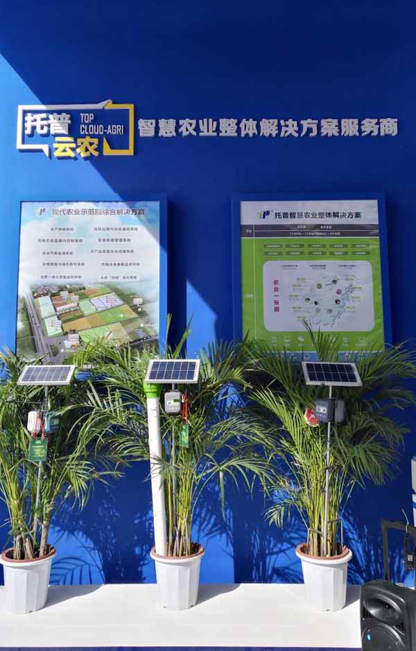 室外展區(qū),多款產品與服務亮相新一輪科技革命和產業(yè)變革,為傳統(tǒng)農業(yè)向現代農業(yè)、智慧農業(yè)轉型帶來強勁動力。為做好現代農業(yè)的可視化遠程診斷、遠程控制、災變預警等智能管理,托普云農研發(fā)的智慧農業(yè)云平臺、智慧農業(yè)整體解決方案以及遠程拍照式蟲情測報燈、無線土壤墑情監(jiān)測站、溫室小管家等智能硬件設備齊亮相展會現場。