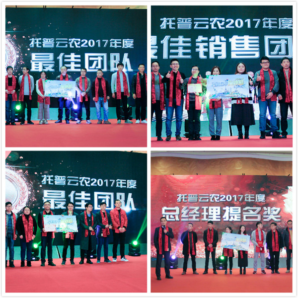 農(nóng)業(yè)信息化是農(nóng)業(yè)現(xiàn)代化發(fā)展的基礎(chǔ)。過去一年,托普云農(nóng)在農(nóng)業(yè)信息化的道路上屢獲農(nóng)業(yè)部門和行業(yè)的認(rèn)可。憑借前沿的技術(shù)研發(fā)與落地應(yīng)用能力,先后榮獲世界物聯(lián)網(wǎng)博覽會(huì)、匠農(nóng)杯等業(yè)內(nèi)頂級(jí)大獎(jiǎng)。在榮耀的成績(jī)背后,離不開一大批優(yōu)秀員工和團(tuán)隊(duì)的辛勤付出。針對(duì)2017年表現(xiàn)突出的團(tuán)體和個(gè)人,現(xiàn)場(chǎng)頒發(fā)出年度銷售精英、創(chuàng)新改善、優(yōu)秀員工獎(jiǎng)、最佳新銳獎(jiǎng)等個(gè)人獎(jiǎng)項(xiàng)以及最佳團(tuán)隊(duì)、總經(jīng)理提名等團(tuán)隊(duì)類獎(jiǎng)項(xiàng)。