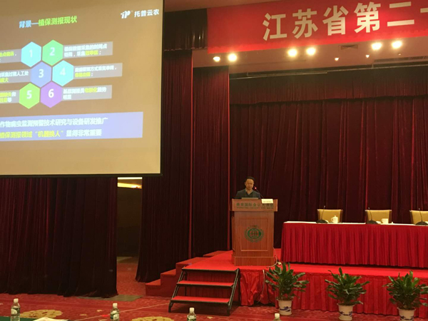 微雨眾卉新,一雷驚蟄始。3月6日至7日,以“綠色防控,減量用藥”為主題的“江蘇省第二十一屆農(nóng)藥與藥械信息技術(shù)交流會(huì)”在南京國(guó)際會(huì)議中心如期進(jìn)行,來(lái)自江蘇省植保系統(tǒng)各植保站站長(zhǎng)、技術(shù)人員,農(nóng)墾集團(tuán)代表、病蟲害專業(yè)化防治服務(wù)組織等400多人參會(huì)。作為國(guó)內(nèi)植保領(lǐng)域領(lǐng)先的行業(yè)代表,托普云農(nóng)受邀出席會(huì)議,并發(fā)表主旨演講。