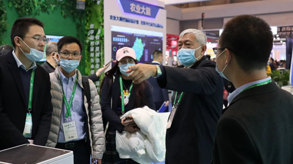 ?????? 展會開幕首日,就迎來了諸多觀眾到場參觀,在托普云農(nóng)展位當(dāng)中,一塊叫做“數(shù)字農(nóng)場”(超級農(nóng)場)的區(qū)域成為一大亮點(diǎn),有許多領(lǐng)導(dǎo)、觀眾在此停留觀摩。超級農(nóng)場是浦江葡萄種植高度設(shè)施化的體現(xiàn),智能化的生產(chǎn)管理和數(shù)字營銷為浦江葡萄產(chǎn)業(yè)帶來了巨大的科技加持。