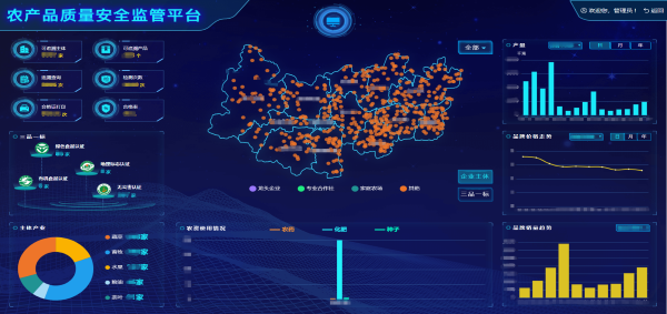 托普云農(nóng)搭建的兩個(gè)平臺整合已有的相關(guān)系統(tǒng)資料,從不同方面對全縣農(nóng)業(yè)產(chǎn)業(yè)進(jìn)行分析對比,追溯主體和產(chǎn)品分布、農(nóng)產(chǎn)品檢測動態(tài)等,農(nóng)業(yè)管理部門可以通過圖表、視頻等形式詳細(xì)了解農(nóng)業(yè)產(chǎn)業(yè)發(fā)展全貌,實(shí)現(xiàn)農(nóng)產(chǎn)品全產(chǎn)業(yè)鏈數(shù)字化監(jiān)管。
