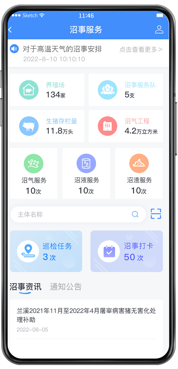 三個(gè)端,構(gòu)建“沼事”一鍵達(dá)(浙里辦)、“沼事”服管臺(tái)(PC端)、“沼事”掌上服管(浙政釘)三個(gè)端,根據(jù)養(yǎng)殖場(chǎng)、規(guī)模種植主體,以及沼液服務(wù)站、沼氣服務(wù)站、沼渣清渣隊(duì)、主管部門設(shè)置分配不同的功能模塊,與相對(duì)應(yīng)的應(yīng)用場(chǎng)景。