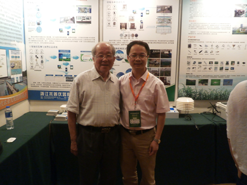 圖為:汪懋華院士蒞臨托普儀器展臺并與朱旭華副總經(jīng)理合影