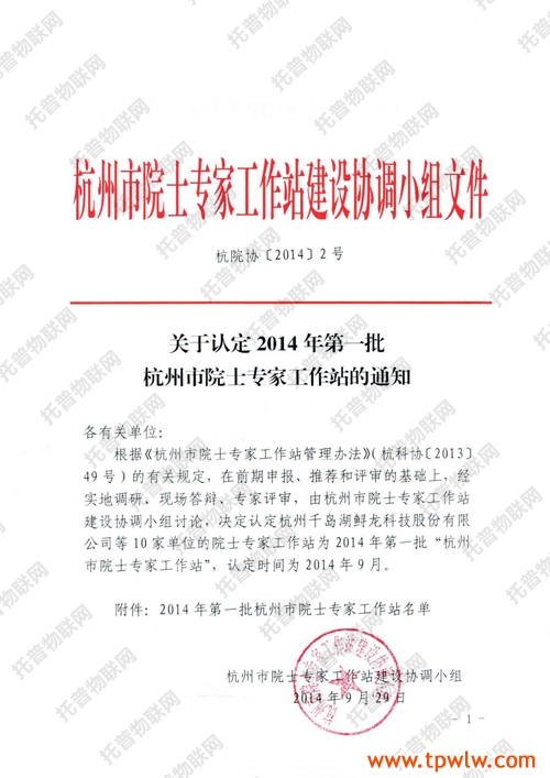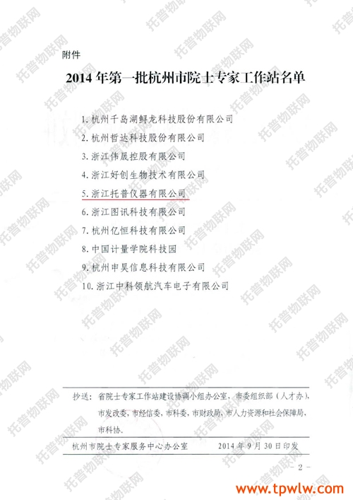 近日,《關(guān)于認(rèn)定2014年第一批杭州市院士專家工作站的通知》頒發(fā),認(rèn)定托普儀器在內(nèi)的10家單位院士專家工作站為2014年第一批杭州市院士專家工作站。