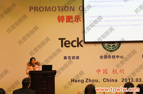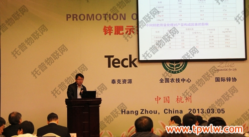 在上午的鋅肥示范推廣技術(shù)培訓(xùn)與研討會(huì)上,會(huì)議邀請(qǐng)了國際專家加拿大泰克資源安德魯·格林教授、國際鋅協(xié)會(huì)樊明憲教授、國內(nèi)專家浙江大學(xué)副教授馮英、天津市土壤肥料工作站鄭育鎖科長講解了鋅肥技術(shù)以及鋅肥在中國農(nóng)業(yè)生產(chǎn)中試驗(yàn)示范研究結(jié)果。據(jù)國際鋅協(xié)會(huì)報(bào)道,全球種植谷物的土地中有50%存在缺鋅的潛在危險(xiǎn)、而我國土壤普遍缺鋅。農(nóng)作物缺鋅主要與干旱缺水、鹽堿、漬澇等農(nóng)田環(huán)境有關(guān),科學(xué)施用鋅肥是解決農(nóng)業(yè)缺鋅問題的主要途徑。近年來,隨著節(jié)水農(nóng)業(yè)的不斷發(fā)展,水肥一體化逐漸成為新的鋅肥科學(xué)施用方式??茖W(xué)施用鋅肥,能夠提高作物產(chǎn)量,改善農(nóng)產(chǎn)品品質(zhì)。為促進(jìn)鋅肥的科學(xué)施用,廣泛宣傳鋅對(duì)作物生產(chǎn)和人體健康的作用,全國農(nóng)技推廣中心與國際鋅協(xié)會(huì)、加拿大泰克資源合作開展鋅肥示范推廣工作,并大力培養(yǎng)應(yīng)用技術(shù)人才、開展田間技術(shù)指導(dǎo)。