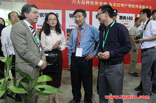 種子雙交會期間,農(nóng)業(yè)部種子管理局局長張延秋、副局長馬淑萍一行還帶領(lǐng)前來參加中國-阿根廷種業(yè)交流峰會的阿根廷代表團參觀了托普云農(nóng)展區(qū)。阿根廷國家種子研究所董事會主席拉威諾勒 萊英姆多農(nóng)業(yè)工程師仔細觀摩了公司所展出的種子檢驗儀器和系統(tǒng),并與陳渝陽總經(jīng)理進行交流。