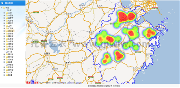 平臺將災(zāi)情按嚴(yán)重程度分為不同顏色,并在省級行政圖中以點的形式表示,只要一打開平臺的行政區(qū)域圖,即可直觀顯示省內(nèi)各區(qū)域的墑情情況如何。