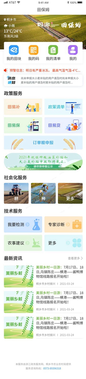 桐鄉(xiāng)是浙北重要糧食生產(chǎn)基地,糧食總產(chǎn)穩(wěn)定在13萬噸以上,種植面積穩(wěn)定在30萬畝以上,種糧農(nóng)戶1.6萬多戶。生產(chǎn)過程中發(fā)現(xiàn)缺少快速服務入口、惠農(nóng)政策申辦繁瑣、流程審批復雜以及找技術困難等問題?!疤锉D贰倍ㄎ辉谵r(nóng)民最關心的“一件事”上,包含土地、氣象、農(nóng)技、農(nóng)資、農(nóng)機、金融、保險、補貼等都是解決農(nóng)民最著急的問題。通過“田保姆”的建設與管理,就是要實現(xiàn)精細化、動態(tài)化、標準化管理,通過建章立制、細化標準、優(yōu)化流程,實現(xiàn)農(nóng)戶通過使用“田保姆”全程在線上政策補貼申請、流轉(zhuǎn)、審核,能夠充分有效利用現(xiàn)有資源,提高服務效率和水平。